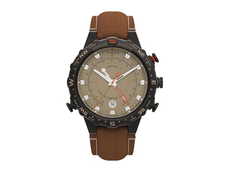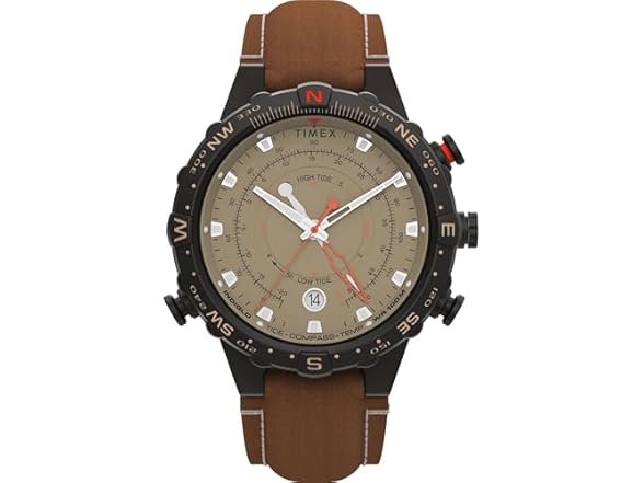 - (1) Timex Men's Allied 45mm Watch - Brown Strap Tan Dial Gunmetal Case