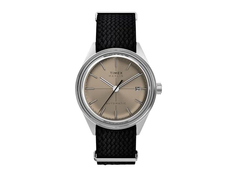 - Classic Marlin Design: The concave dial showcases a crosshair pattern punctuated with a date window beside the 3 o’clock marker