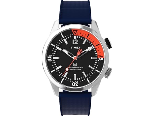 - (1) Timex Men's Waterbury Traditional 41mm Watch - Blue Strap Black Dial Stainless Steel Case