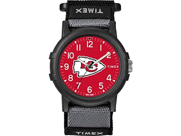 - Timex NFL Recruit 38mm Watch – Kansas City Chiefs with Black Fabric Strap