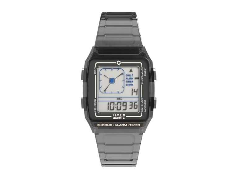 - (1) Timex Unisex Q LCA 35mm Watch - Gray Strap Digital Dial