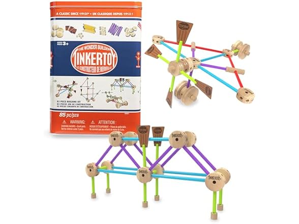 - STEAM Building Set: The TINKERTOY Retro Building Set Tin improves your child's learning through STEAM (science, technology, engineering, arts & math) concepts.