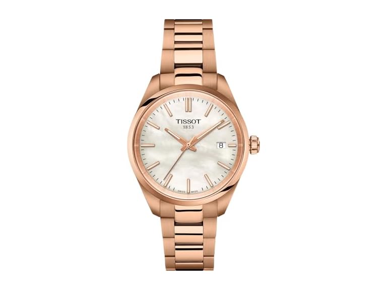 - (1) Tissot PR 100 34mm, Swiss Quartz Watch for Women, Stainless Steel with Rose Gold PVD Case, White Mother of Pearl Dial, T1502103311100