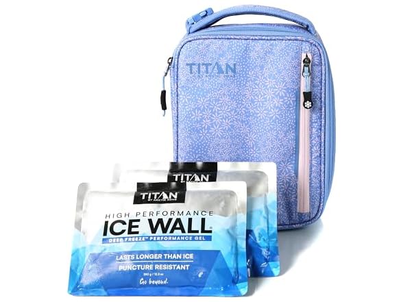 - (1) Titan by Arctic Zone Fridge Cold Lunch Box with 2 Gel Ice Packs, Small Insulated Cooler Bag with Leak Proof Lining for School and Work, Blooming Daisies