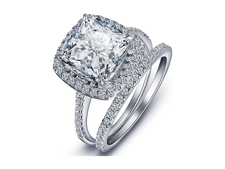 - (1) TIVANI Women's 2PCS Pretty 18K White Gold Plated Princess Cut CZ Bridal Engagement Wedding Band Set Best Anniversary Promise Rings for Her Eternity Love Collection Jewelry Heart Arrow Rings (10)