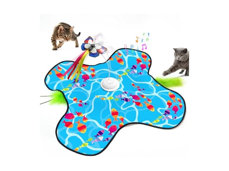 - Hide and Seek Cat Toys :This indoor interactive cat toy brings endless fun to cats. When the toy is in operation, the butterfly on top dances, and the feather wand and caterpillar quickly hide and move within the 22-inch removable colorful fabric cover. The chirping sounds of the animals stimulate cats to seek out and engage them in a game of hide-and-seek, perfect for kittens and adult cats alike