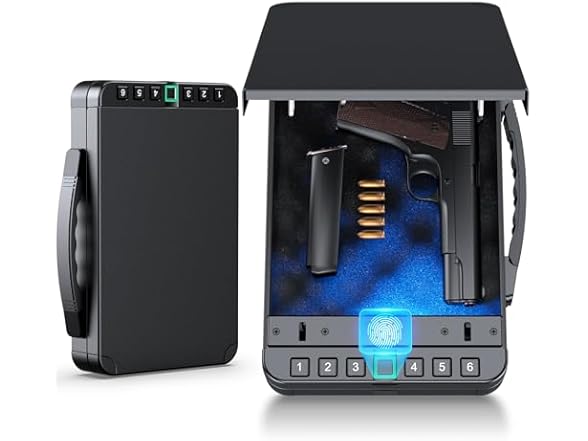 - Three Access Methods: The car gun safe for handgun features biometric fingerprint unlocking, a 6-digit backlit keypad code, and two backup keys for access. It can store up to 100 fingerprints and 50 codes, with a quick 1-second automatic door opening for fast access to your firearm.