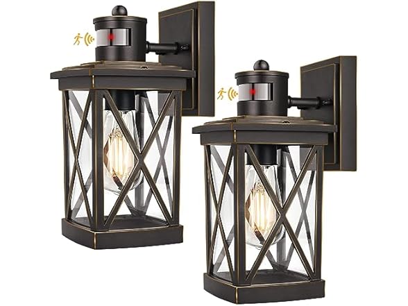 TOBUSA 2-Pack Motion Sensor Outdoor Wall Lanterns Waterproof