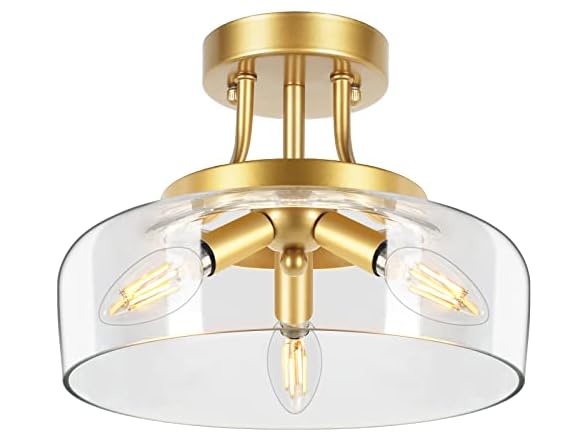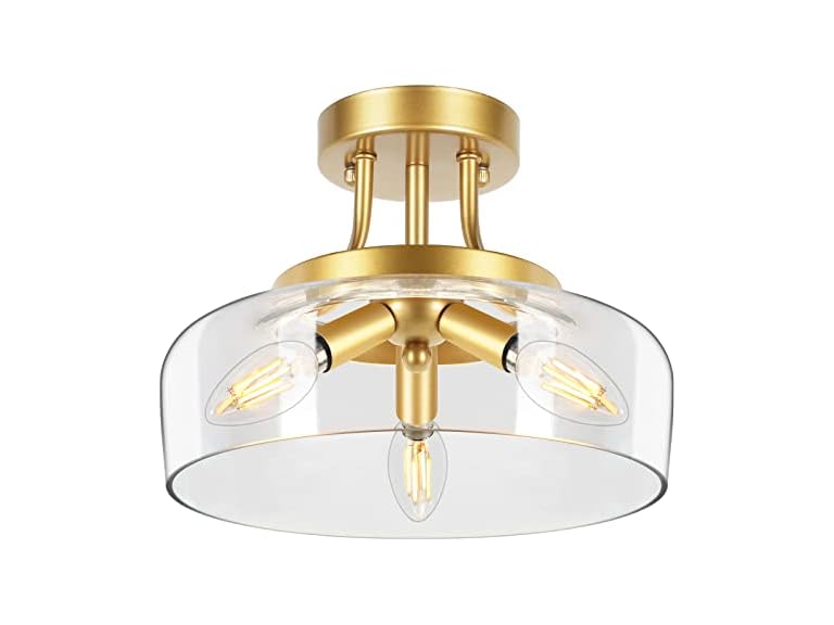 - 【Semi-Flush Mount&Modern Style】 This 3-Bulb semi flush mount ceiling light constructed with 3mm-5mm thick clear glass shade, the open round shape allow the ceiling lamp to light up your room with no dark corner. Paired with exquisite canopy and unique E12 triangle socket, our glass ceiling light adds fantastic modern industrial chic wherever they mounted on your ceilings in kitchen, bedroom, entryway, front door, porch, corridor, closet, stairway.