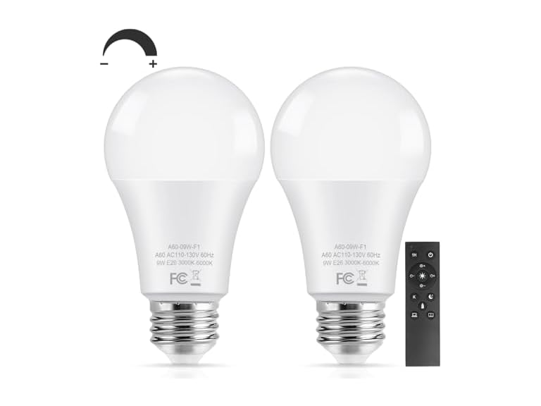 - 【Energy Saving & Long Lifespan】Each 9W LED light bulb with remote uses energy-saving LED chips, that can replace 60W incandescent and halogen bulbs. In other words, 60W incandescent light bulb takes 1 hour of electricity equivalent to our 3CCT A19 LED bulbs lighting your home for 60 hours. Our 60 watt dimmable LED bulb can last up to 25,000 hours. There's no need for frequent bulb replacement and help you save electricity bills