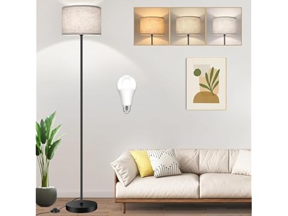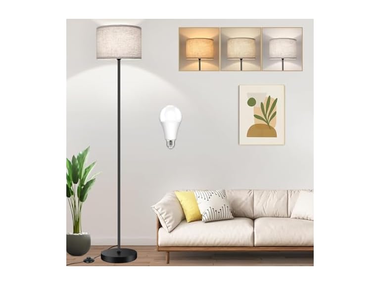 - 【3CCT A19 Bulb Included】Each bedroom standing lamp includes a 9W 3000k/4000k/6500k A19 LED light bulb. You can choose your ideal lighting effect by a easy-operated foot switch. Compared to traditional incandescent bulbs, our included E26 LED bulb consumes 90%+ less electricity but provide higher lighting capacity. Besides, our 9w super bright LED bulb can be used up to 25,000 hours, so you don't need to replace bulbs frequently and help to save your labor cost.