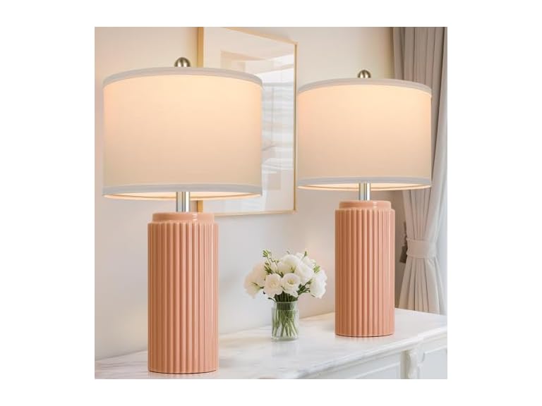 - 【Ceramic Table Lamps Set of 2】The ceramic living room lamps are designed with an exquisite orange polished process and a unique vertical stripe pattern, which can easily fit into most decorative styles such as modern, classic, country, vintage, farmhouse, Northern Europe, boho, retro, and more. Carefully selected high-quality ceramic materials make the table lamps durable, scratch-resistant, and fading-resistant. As a result, the ceramic table lamps can always keep their magnificent appearance