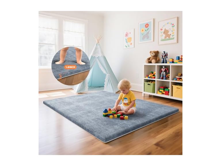 - 【Soft Thickened Coral Velvet Playmat】Our playpen mat is made of 1.3 inch thickened memory foam, and the thick crawling mat helps to alleviate the pain of toddlers when they fall. The surface is made of super soft coral velvet fabric, which is soft and comfortable to touch and won't fade or stick to the fur. Ideal for babies and families to play together, this baby floor mats for crawling also provides a soft and durable area for your baby.