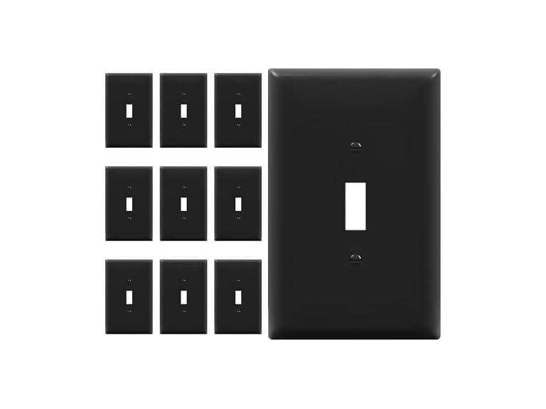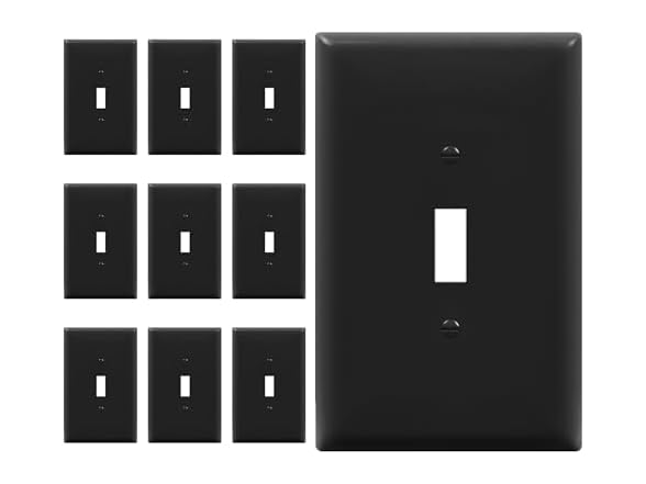 This listing is for 10 oversized wall plates in the black color option. ENERLITES toggle wall plates are also available in white, gray, brown, light almond, and ivory color options to ensure a match for any home decor. Whichever color you choose to purchase will come with a set of matching colored screws to promote a sleek aesthetic. This product is UL listed and includes a one-year warranty.