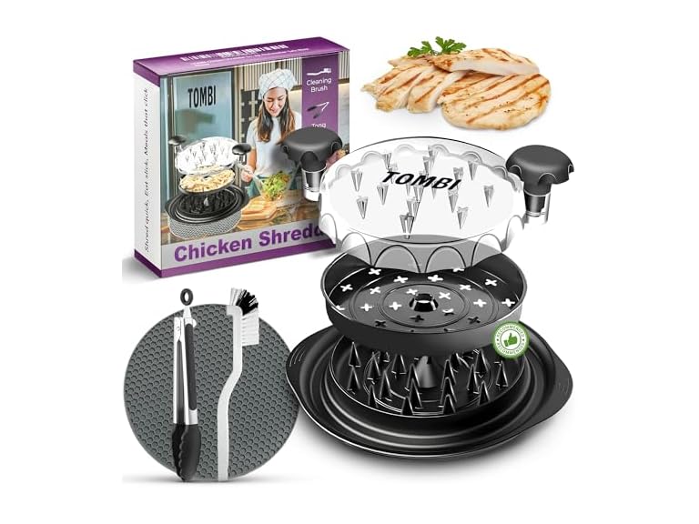 - TOMBI Chicken Shredder | 4 in 1 Visible Meat Shredder with Mat, Tong, Tray & Brush | BPA-Free, Non-Slip, Dishwasher Safe | Perfect for Shredded Chicken BBQs Vegetable Beef