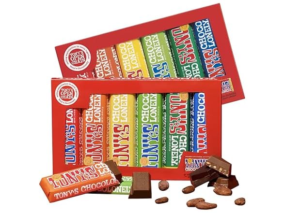 - A RAINBOW OF FLAVORS: Life might not be all chocolate and rainbows, but Tony’s Rainbow Tasting Pack sure is! Packed with 2 of each of 6 classic Tony’s flavors in cheery rainbow packaging, this tasting pack has something for everyone. From the creamy richness of Milk Chocolate to the indulgent sweetness of Milk Caramel Sea Salt, the chewy goodness of Milk Chocolate Nougat, and the bold richness of Dark Almond Sea Salt and 70% Dark Chocolate—this pack offers a bite of everything!