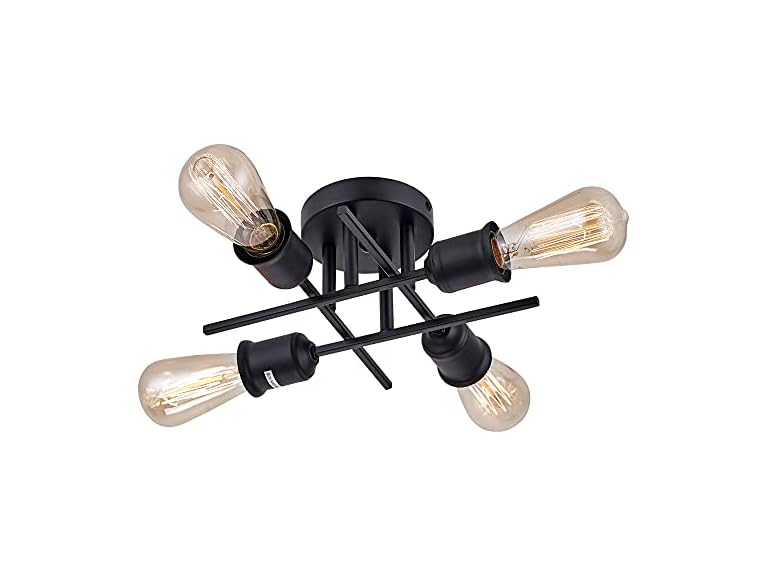 - (1) TOPHORT Semi Flush Mount Ceiling Light Fixture, Black Vintage Metal Sputnik Chandelier with 4 Lights E26 Bulb Base Suitable for Dining Room Living Room Bedroom