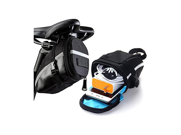 - (1) Topyond Bike Saddle Bag, 1.2L Bike Seat Bag, Polyester Seat Bags with Reflective Strips, Bike Seat Pack for Safety and Convenient Cycling Storage