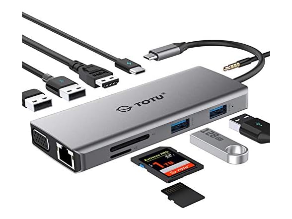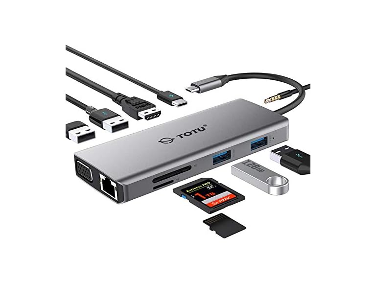 TOTU 11-in-1 USB-C Hub: 4K HDMI, VGA, 2x USB3.0, 2x USB2.0, Ethernet, SD Card Reader, Audio, 3.0 PD, Mac Pro & Laptops Compatible