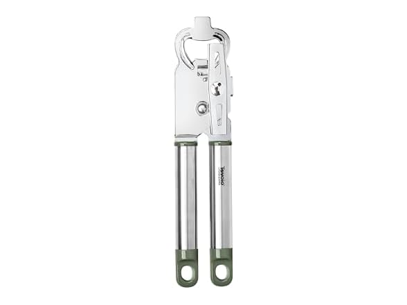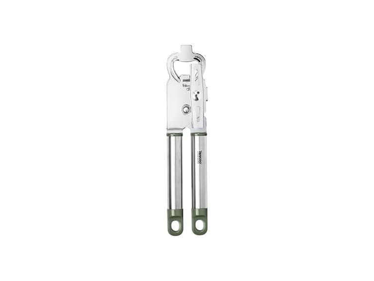 - Tovolo Can Opener Manual Heavy Duty 2 in 1 Stainless Steel with Bottle Opener Kitchen Tool Easy Turn Handle Thyme Green, Smooth Edge Safe Cut No Sharp Edges Manual Hand Held Can Opener for Tins Cans