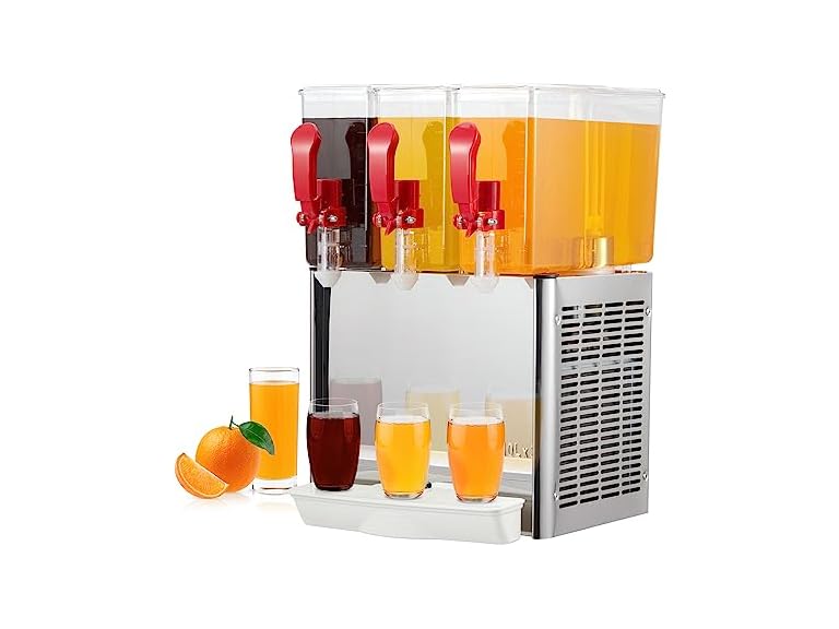- 30L Large Capacity: With triple 2.64 gallons (10L)* 3 tanks, our Commercial juice dispenser can accommodate a large amount of drinks at the same time. The broadened mixing leaf reduces sediment and stirs drinks 360-degree. In addition, the rubber gasket prevents juice leakage from the motor.