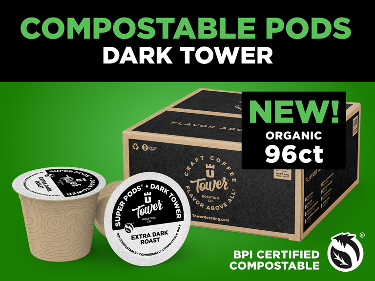 - (1) (96ct) Tower Roasting Coffee Compostable Kcups in "Dark Tower"