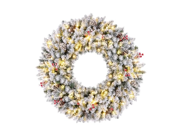 - No Assembly Needed & Flame-Retardant Material: Enjoy hassle-free decorating! This flocked wreath requires no assembly—simply fluff the branches for a full look in minutes. Made with flame-retardant PVC and a waterproof power cord, it’s safe and durable for outdoor Christmas decorations or indoor use