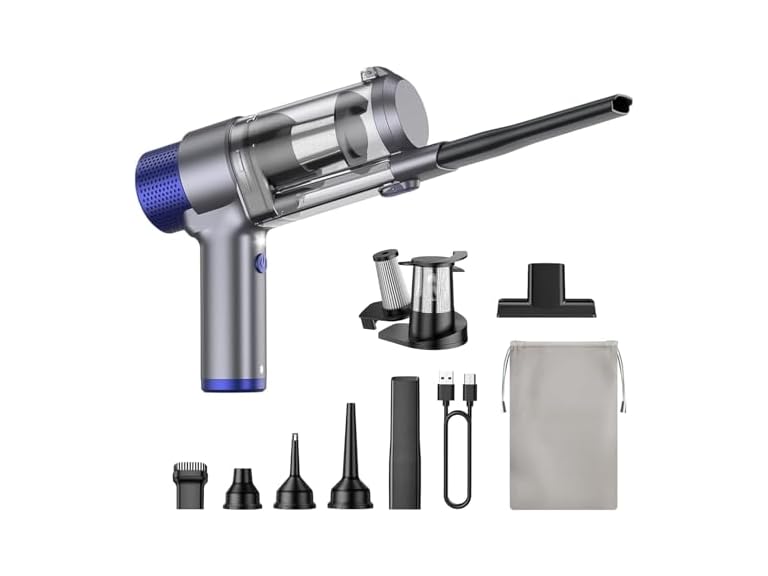 - MULTIFUNCTIONAL VACUUM CLEANER:it is with h 7 versatile accessories, transforms into a 4-in-1 cleaning tool: vacuuming, blowing, inflating, and vacuum compressing.From daily cleaning to home organization,it handles all scenarios with one device