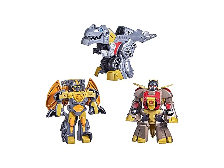 - 2-IN-1 TOYS: Little heroes can enjoy twice the fun with 2 modes of play, converting the Grimlock figure from Tyrannosaurus Rex to motorcycle mode, Dinobot Snarl figure from robot to Stegosaurus mode, and Predaking figure from robot to dragon mode and back again