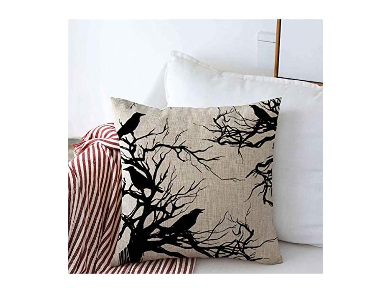 - (1) sweetrav Throw Pillows Cover 20 x 20 Inches Tree Monochrome Watercolor Ink Animals Wildlife Crow Corvus Raven Darkness Gloomy Scary Caw Branch Cushion Case Cotton Linen for Fall Home Decor
