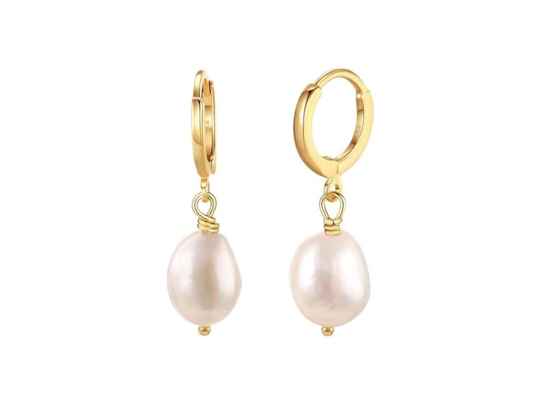 - (1) Trendlooks 925 Sterling Silver 10mm/14mm Pearl Earrings with 14K Gold Pated Huggie Small Hoop Earrings for Women Baroque Pearl Earrings S925 Drop Earring (10mm)