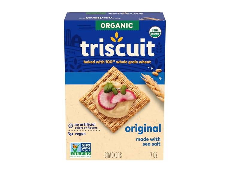 - (1) Triscuit Organic Original Whole Grain Wheat Crackers, Organic Crackers, Vegan Snacks, Lunch Snacks, 7 oz