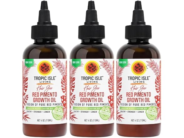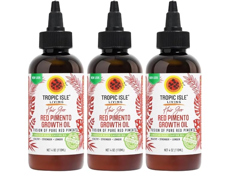 - (1) 3x Strong Roots Red Pimento Hair Growth Oil – 4oz Bundle with Tropic Isle Jamaican Black Castor Oil – Nourishes, Hydrates, and Revitalizes Hair – Gift Set (3 Items)