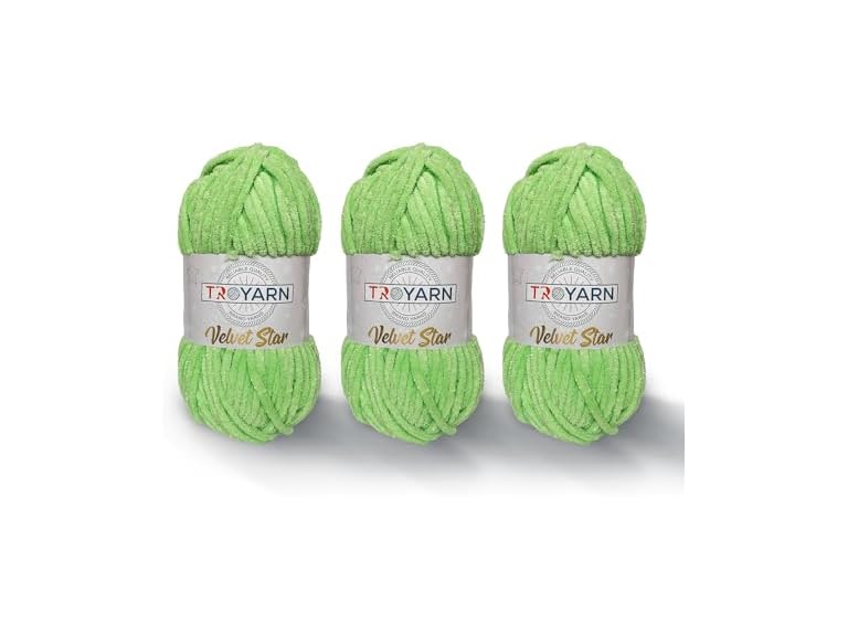 - Material and Texture: Troyarn Velvet Star yarn is made from 100 percent premium polyester and features a super bulky chenille structure with a soft, plush, and velvety texture that is ideal for cozy blankets, warm scarves, amigurumi toys, winter hats, baby items, and any project where maximum softness and volume are desired with easy handling for beginners.