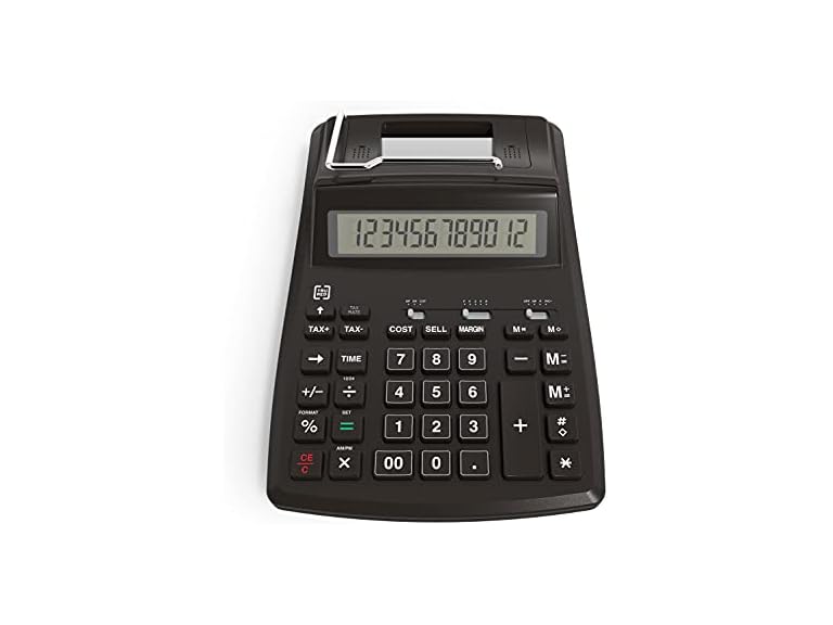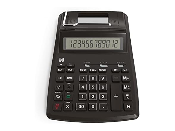 - Printing calculator with 12-digit LCD display for convenient viewing.