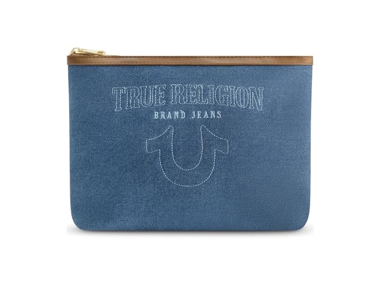 - ZIP MAKEUP BAG: This cute and fashionable make up bag features the iconic True Religion horseshoe logo, sleek gold hardware, and a distinctive denim aesthetic, making this luxury cosmetic pouch a stylish and practical way to keep your makeup accessories and toiletries easily accessible while on the go