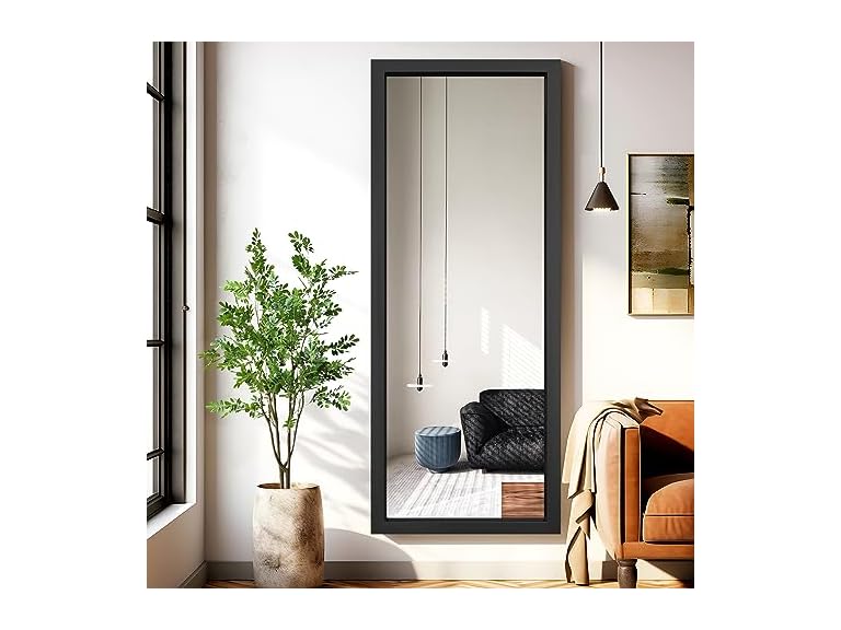 - Trvone Full Length Mirror, Aluminum Alloy Thin Frame, Wall-Mounted Mirror, Hanging or Leaning Against Wall, Bedroom Mirror, Full Body Mirror, Black, 65"x22" (JJ00371AAF)