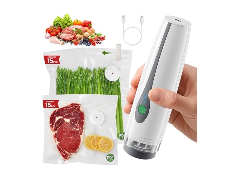 - [6X Longer Freshness & One-Touch Simplicity] Seal food in just 6 seconds with a single press! This handheld vacuum sealer uses advanced technology to lock in freshness up to 6X longer—reducing waste and saving money. Perfect for meal prep, leftovers, and bulk storage with your food vacuum sealer machine.