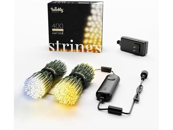 - (1) Twinkly Strings 400 White LED, LED Light String for Outdoor and Indoor, Warm to Cool White Christmas Lights, Mappable LEDs, Compatible with Alexa, Google Home, IP44, App Control, Black Wire, 105ft