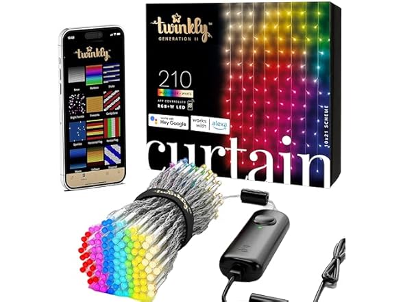 - App-Controlled LED Curtain Lights Outdoor: Control all your decorations with the Twinkly mobile application. Virtually combine multiple Twinkly hanging Christmas lights into one beautiful installation.