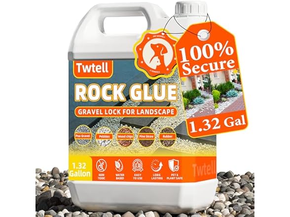 - High-Quality Landscape Rock Glue: The rock glue doesn't only work on light and soft materials but also acts as a gravel stabilizer for hard and heavy ones like gravel and pebbles. It can firmly lock the Gravel/Pebbles/Stones in the Walkways, Yards, Patios, and Driveways. Say goodbye to messy landscapes, tedious cleaning, and expensive gardeners.