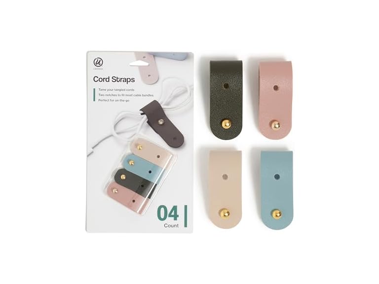 - U Brands Vegan Leather Cord Straps, Set of 4 Cable Ties, Cable Management, Office Desk Accessories, Office Supplies, Assorted Colors