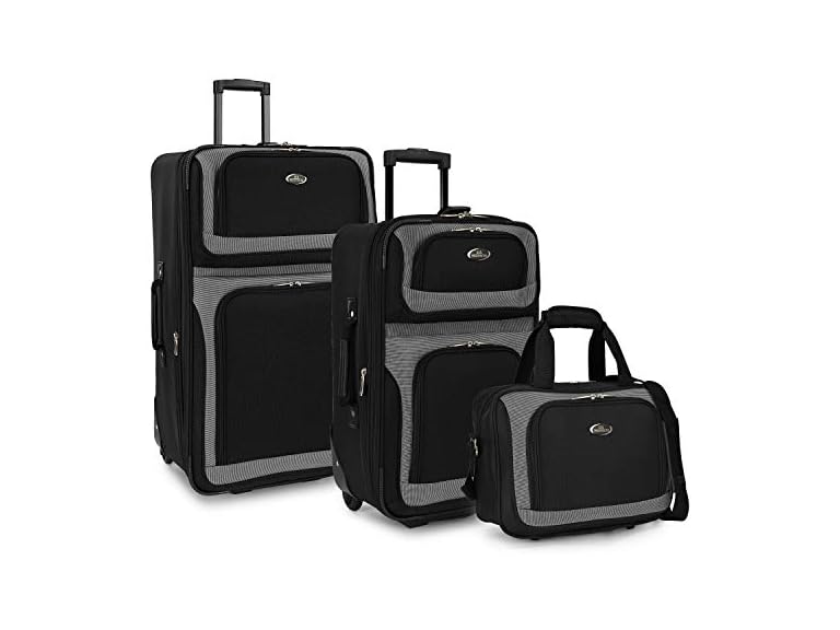 - (1) U.S. Traveler New Yorker Lightweight Expandable Rolling Luggage, Black, 3-Piece Set