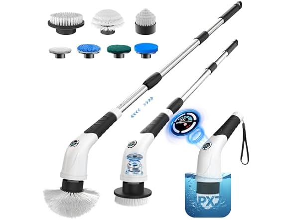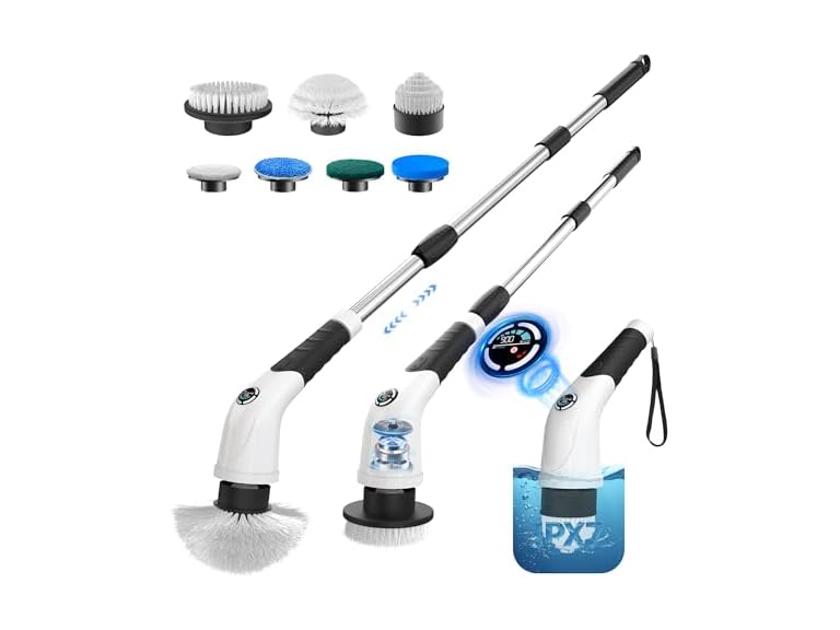 - All-in-One Cleaning Solution – Stop wasting money on multiple tools. With 7 replaceable brush heads, this electric scrubber handles tubs, tiles, sinks, stoves, floors, and even narrow corners.