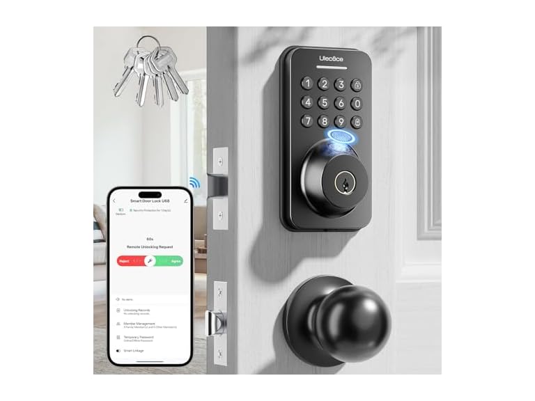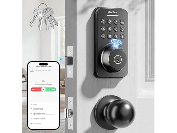 - 4-in-1 Unlocking for All Scenarios: 4 unlock ways (APP/remote, fingerprint/all ages, passcode, 5 backup keys) fit Airbnb (tenant access), families, businesses. 100 user codes + one-time codes (cleaners/pet sitters) solve key management troubles.