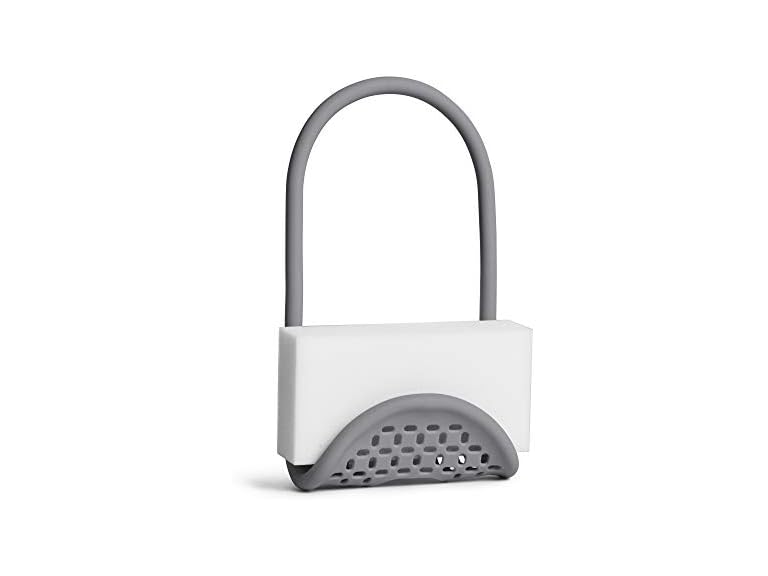 - Umbra Sling Kitchen Sink Caddy Sponge Holder, Hangs Over Faucet or Divider, Single, Grey