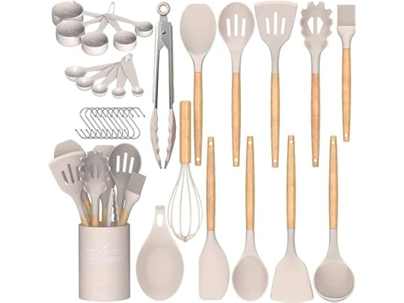 - Umite Chef Kitchen Cooking Utensils Set, 33 pcs Non-Stick Silicone Cooking Kitchen Utensils Spatula Set with Holder, Wooden Handle Silicone Kitchen Gadgets Utensil Set (Khaki)