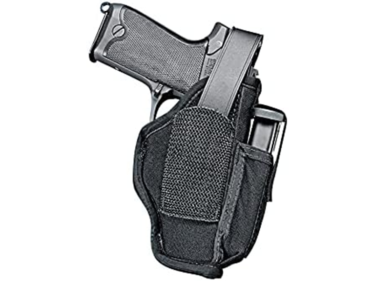 - Secure, non-stretch hook & loop retention strap and molded thumb break keep your firearm snug