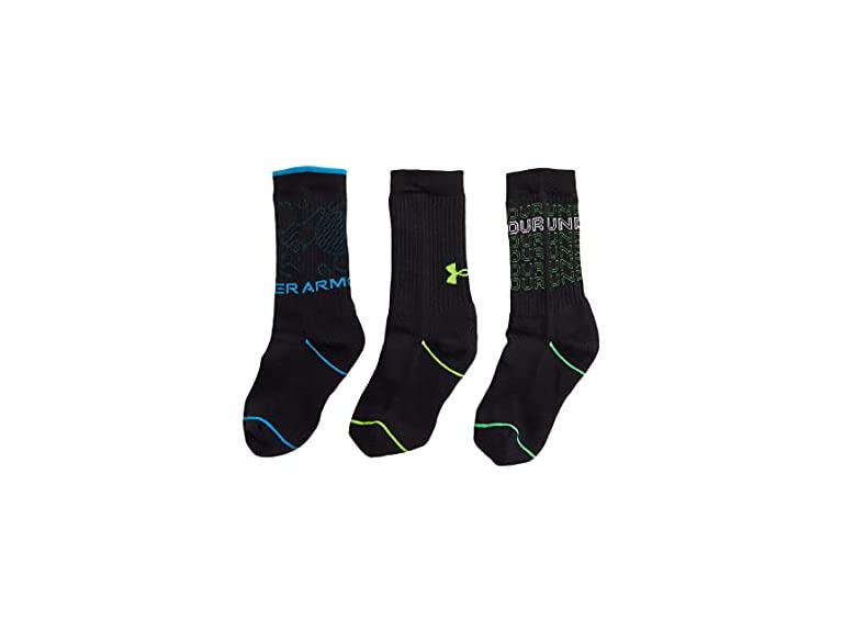 - (1) Under Armour Boy's Phenom Crew Socks 3-Pair (Little Kid/Big Kid) Radar Blue/Assorted LG (13.5 Little Kid - 4 Big Kid)