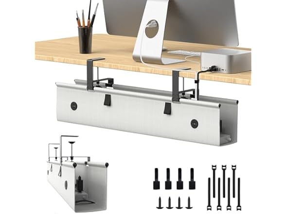 - RECLAIM YOUR SPACE, RECLAIM YOUR MIND: A cluttered desk leads to a cluttered mind. KIGJU is more than a wire hider; it’s an investment in your productivity and well-being. With a generous 30" x 5.5" capacity, it easily swallows bulky power bricks, docking stations, and all your computer cords. Transform your chaotic WFH office into a sanctuary of focus. Your clear desk (and clear mind) awaits.
